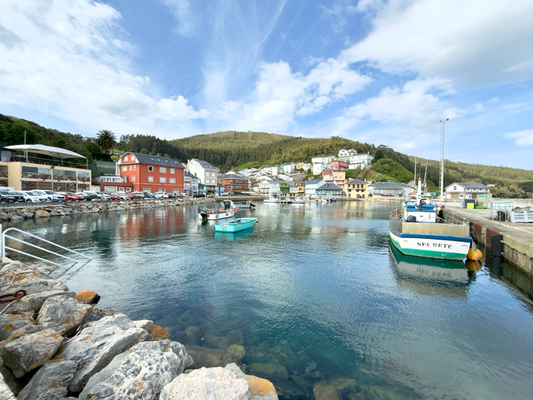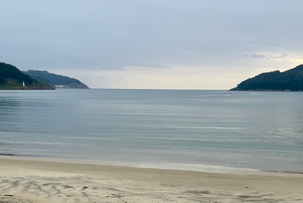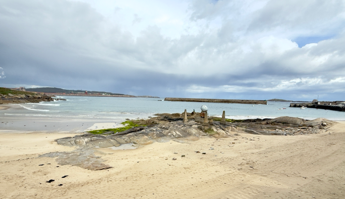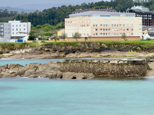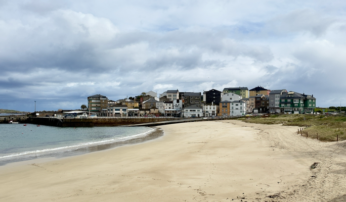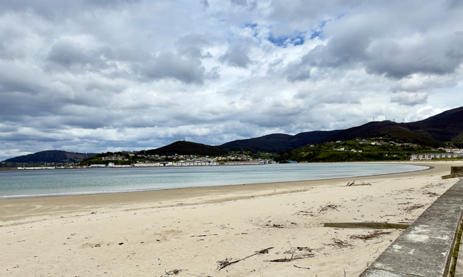 um 10:30 uhr war ich in porto de espasante. auf dem weg dorthin sind wir nur autos begegnet. auch hier im ort sah ich bislang nur autos und keine leute. man hört, wie die wellen gegen die hafenmauer und den sandstrand laufen.
