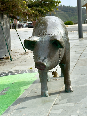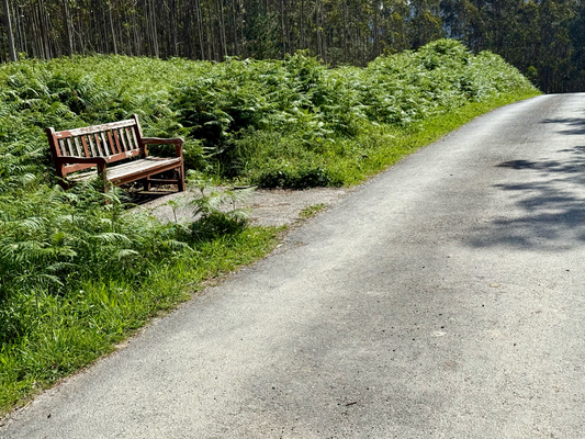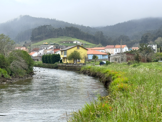 um 10:45 uhr kam ich an einem busunterstand vorbei und hab dort einen kurzen stopp nach 9,5 km eingelegt. die temperaturen liegen bei 15° und es ist die ganze zeit komplett bedeckt mit dunklen wolken, die noch so aussehen, als könnten es bald regnen. obwohl ich jetzt in größeren ort ponte mera bin, gibt es hier keine einzige bar oder cafe. die nächste soll in ca. 5 km sein. rechts vom tabakladen ging der weg weiter. hier ging’s nach kurzer zeit parallel zu den bahnschienen und über eine kleine brücke. danach muss man sofort scharf rechts gehen, um über einen feldweg in richtung des zielortes zu kommen. nach 14,5 km ist man im ort rocha. gleich bei ortseingang sind mehrere häuser, die nicht mehr bewohnt sind. der ort streckt sich auf eine länge von ca. 2 km. auf der sind weitere gebäude unbewohnt. es gibt auch hier weder 1 bar noch restaurant. es ging heute an den hauptstraßen lang. da umgibt einem schon mal ein mulmiges gefühl, da einige autofahrer/innen so nah an einem vorbeifahren, dass sie einen fast umfahren, obwohl beide straßenhälften frei sind. nicht in allen orten sind überall bürgersteige, sondern nur ein circa 1 m breiter streifen, der farblich abgesetzt ist und als fußgängerweg gelten soll. zudem gibt es hinweisschilder, dass ein abstand von 1,5 m einzuhalten ist. nach 18 km fand sich eine geöffnete bar, jedoch konnte man dort nur was trinken. 2 km vor dem ortugueira ist das hostal giz. hier bekam ich für 40 € ein sauberes gutes zimmer. im ort selbst gab’s nur ein hotel für 180 €. da hier am wochenende ein motorradtreff stattfindet, dürfte dort auch alles ausgebucht sein.