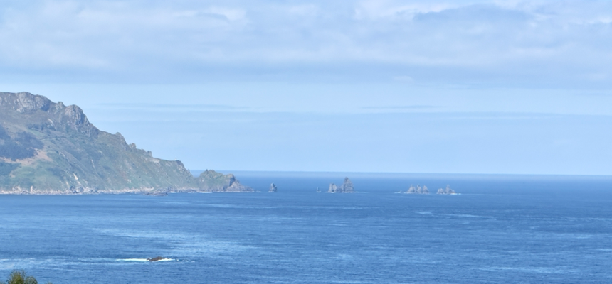nach 2,5 kilometern war ich wieder am ausgangspunkt von gestern. der weg ging stetig bergauf. nach ca.4,5 km wurde es doch so steil, dass ich die stöcke nahm.. so war es angenehmer zu laufen. nach der 1. bucht ging der weg rechts weiter. der blick aufs wasser zeigt die endlose weite des meeres. schaumkronen sind auf dem wasser zu sehen. in weiter entfernung sind einige weiße fischerboote auf dem wasser. in der zweiten bucht kam der wind so stark von der seite, dass die böen dich kurz zur seite drückten. es dürften bestimmt konstant, jetzt 6 windstärken sein. rechtsseitig ist ein größerer sandstrand. die wellen mit weißen schaumkronen laufen auf den strand zu. nach 9,5 km kam ich durch die ersten kleinen orte. hier waren bei den häusern jeweils die jalousien runter. es dürfte sich hierbei um feriendomizile handeln. ist natürlich schön, weil sie einen erhöhten blick auf das meer haben. nach ein paar 100 m kam eine stelle an der bänke und auch spielgeräte für kinder waren, die sich im schatten von bäumen befinden. hier habe ich eine kurze rast gemacht, um mal aus der sonne rauszukommen. das war mein erster stop nach 10 km. zum strand hin parkten einige fahrzeuge mit surfsachen auf den dächern. nach 11,5 km war ich im ort o arino. hier hatte am strand eine bar geöffnet. hier habe ich eine frische warme tortilla bekommen und tee getrunken. bei weiter heftigen winden ging es die straßen u wege entlang mit wechselndem auf und ab. teilweise wirbelte der wind den staub wie beim hurrikan auf und einem entgegen. nach 17 km sollte die nächste bar zur pause sein. war sie auch, leider geschlossen. in einem folgenden bushäuschen machte ich einen stop, ass eine banane und 1 müsliriegel. dann ging es weiter. trotz des windes lagen die temperaturen bei 20°. ca. 3 km vor cedeira kam noch mal ein lang gezogene steiler anstieg von circa 1 km. hier waren die stöcke auf jeden fall wieder notwendig. gegen 15:00 uhr konnte ich im vorgesehenen hotel jemanden erreichen und das zimmer reservieren. nach 24 km erreichte gegen 16:15 uhr das hotel praia magdalena, für 50€ die nacht. es ist top bewertet. ausstattung und sauberkeit absolut top. im supermarkt gadis kaufte ich noch einige sachen ein. um 19:30 uhr gab’s beim italiener um die ecke leckere spaghetti. die morgige etappe kann nur in cedeira enden. das sind laut google maps 25 km. die dürften es in sich haben, da es laut informationen von der bedienung beim italiener immer mal wieder kräftig rauf und runtergehen wird. also lass ich mich überraschen, wie es morgen wird. über booking habe ich vorsichtshalber schon ein zimmer reserviert.
