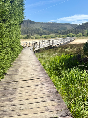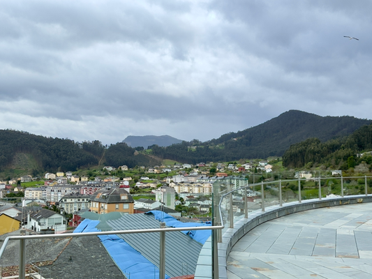 ich fragte in einer apotheke nach, ob sie mir ein taxi rufen könnten, damit ich nach viveiro fahren könnte. der besitzer bejahte und rief ein taxi. zehn minuten später war das taxi da. im regen fuhren wir über die hügelige landschaft zum hotel thalasso cantabrico. es verfügt über einen innen- und einen außenpool in einem separaten gebäude. der innenpool sei aber erst am nachmittag mit termin geöffnet und würde zusätzlich 20 € kosten. da es nur ein kleines innenbecken war und der außenpool noch nicht gefüllt war, verzichtete ich darauf. am nachmittag war es endlich trocken.
