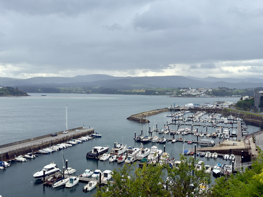 wie so oft im april, zeigte das wetter seine ganze bandbreite. von sonnenschein über kräftige schauer bis hin zu nieselregen war heute vormittag alles dabei. nach einem kurzen besuch in der örtlichen kirche ging ich ins gegenüberliegende café, um etwas zu trinken. vor dem café saßen draußen eine junge pilgerin und ein pilger. ich kam mit ihnen ins gespräch und stellte fest, dass es sich um eine deutsche und einen amerikaner handelte, die gemeinsam auf dem weg nach santiago sind. wir unterhielten uns eine weile, bevor sie sich auf den weg zu ihrer unterkunft machten. sie waren heute vormittag 12 kilometer nach ribadeo gelaufen.