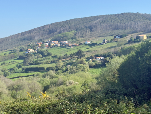 da unten an der küste ein militärstützpunkt war, konnte ich nicht mehr direkt an der küste entlang gehen. also weiter über die straße von brion nach valdovino. schnell ging es steil bergauf. nach 7,5 km sollte es eine bar geben, aber die hatte geschlossen.