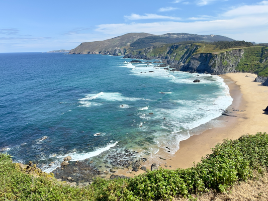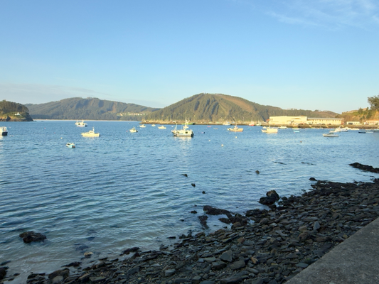 um 8:00 uhr habe ich die unterkunft verlassen und gleich um die ecke eine bar gefunden. dort gab es ein croissant und einen kaffee. danach wollte ich mit komoot einen weg aus der stadt herausfinden. das gelang schnell und ich bin der küste entlang gegangen. das wetter ist weiterhin sonnig, mit 14 °c, aber heute soll es nicht so warm werden wie gestern.