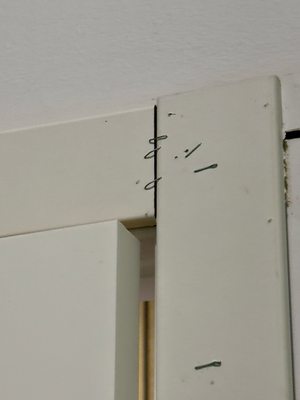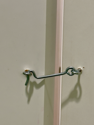 ich ging zu einer weiteren bar und setzte mich zunächst in den außenbereich, um meine berichte von gestern und heute zu diktieren. da es jedoch wieder stark zu regnen begann, ging ich in die bar, wo es wärmer und angenehmer ist. als ich dort die toilette aufsuchte fiel mir auf, mit welch handwerklicher kunst hier die sicherung des türrahmens bzw. der tür angebracht wurden. in einem restaurant gab es heute noch mal calamaris. als warme mahlzeit, da es mir am abend in santiago sonst zu spät wäre.