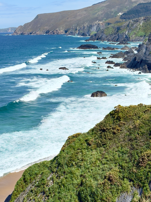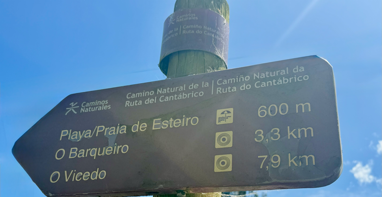 an einer weggabelung gab es rechts direkt eine bank. die habe ich mir für die nächsten minuten reserviert. ich habe eine banane gegessen, etwas getrunken und mich erneut eingecremt, da die sonne doch intensiver schien. trotz der leichten meeresbrise sind die temperaturen auf 21 grad gestiegen. der zweite teil der strecke, 12 kilometer bis zum ort barqueiro, war geprägt von ständigen auf und abs. daher waren meine stöcke bis zum schluss im einsatz.. besonders die letzten 3 kilometer zum zielort waren anspruchsvoll, mit vielen höhenunterschieden. nach 24 kilometern erreichte ich barqueiro um 15:40 uhr. im erdgeschoss des hostal la marina befindet sich das restaurant, die gästezimmer liegen in den oberen stockwerken. mein zimmer ist klein, aber sauber, ruhig und zur seite raus. da die sonne auf mein zimmer schien, beschloss ich spontan, meine sachen zu waschen und an meiner mitgeführten wäscheleine im fenster aufzuhängen. bei dem leichten wind hoffe ich, dass alles bis zum abend trocken ist. sollte es nicht ganz trocken sein, hilft eine kleine heizung, die im zimmer ist. da es frühestens ab 20:00 uhr etwas zu essen gibt, bestellte ich im restaurant calamaresringe mit pommes und dazu eine große flasche wasser, den rest als wasservorrat. für morgen habe ich den weg nach covas (20 kilometer) geplant.