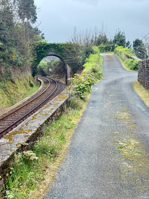 so aus, als würde sich das wetter bald bessern. also habe ich mich an die rezeption gewandt und nach möglichkeiten gefragt, nach san cibrao zu kommen. die haben mir empfohlen, den zug zu nehmen, was ich auch getan habe. in einer kurzen regenpause bin ich zum bahnhof gegangen, der etwa 2 kilometer entfernt war. der zug war eine kleine, gemütliche bimmelbahn, die an jeder kleinen haltestelle hielt.