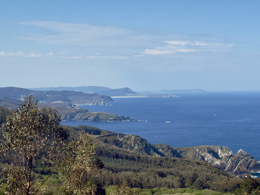 es ist schön, jetzt mal das rauschen des meeres zu hören statt der geräusche von vorbeifahrenden autos. es ging jetzt mehrere kilometer durch den wald rauf und runter und es schließt sich auch noch weitere waldfläche an. das meeresrauschen ist immer noch zu hören, obwohl ich schon einige 100 m höher und weiter vom wasser entfernt war.