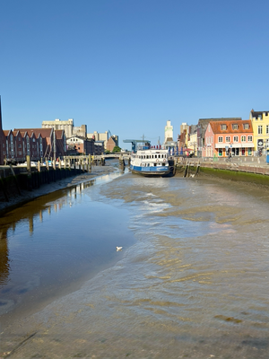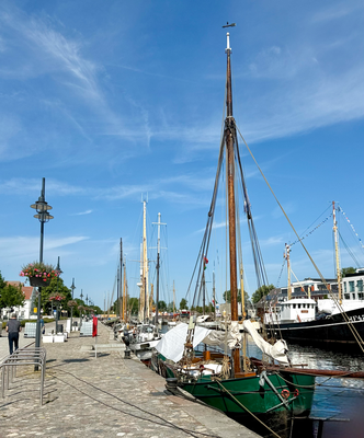 im anschluß fuhren wir noch weiter durch die stadt. hier waren diverse alte häuser gut aufgearbeitet. wir fuhren auch an eine stadtmauer vorbei zum hafen.
