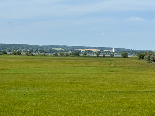 mittlerweile kam die sonne durch, und schon waren wir bei über 20°, was angenehm zu fahren war. nachdem wir mit der fähre über gesetzt hatten, kam der letzte abschnitt von ca. 40 km bis nach wohlendorf in mecklenburg-vorpommern. die hatten es in sich, denn es ging ständig rauf und runter. mit steigungen bis zu 10 %. von normalen straßen über schotter und kieswegen war alles dabei. kreuz und quer ging es weiter, und wir fuhren auch durch viele waldstücke.