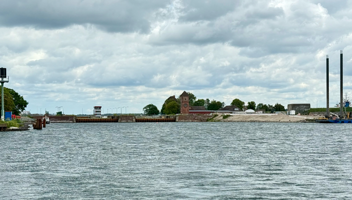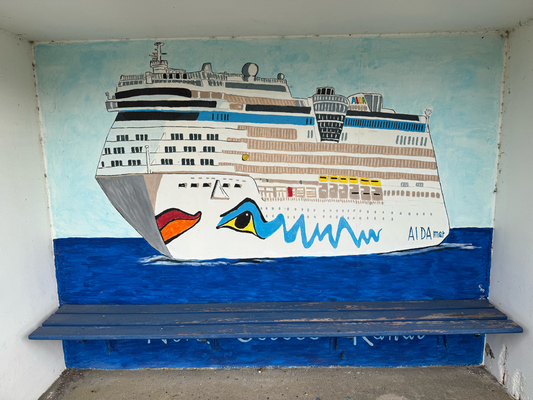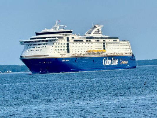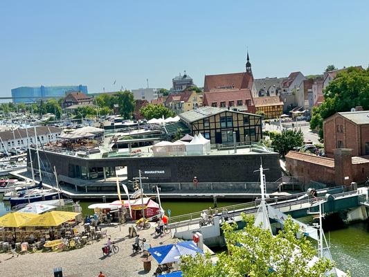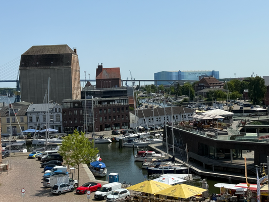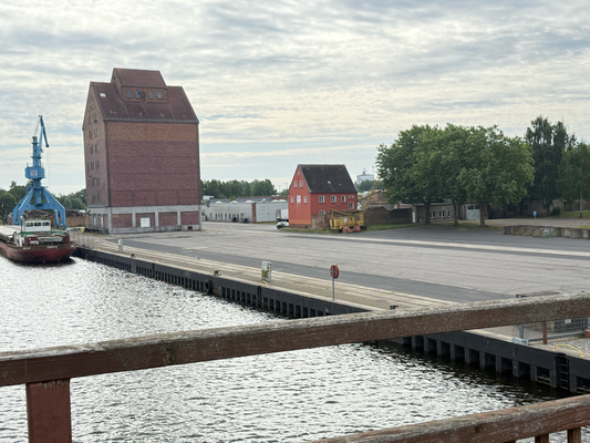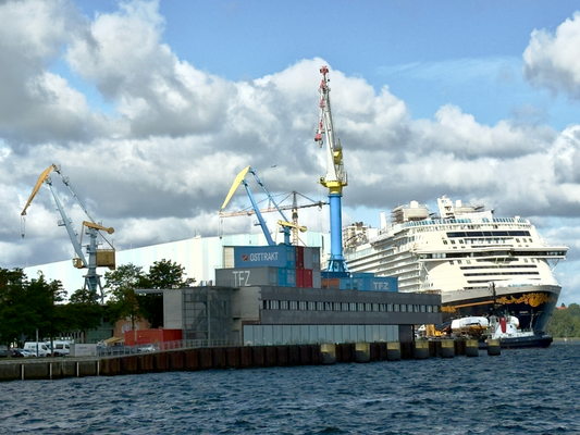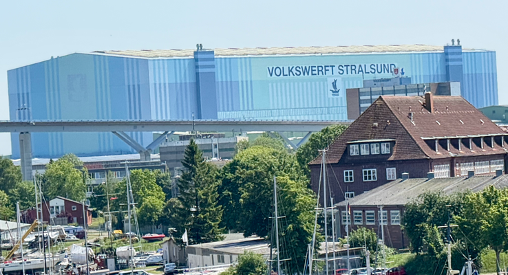 in wismar suchten wir den hafen auf. bei der dortigen werft war die bugspitze eines großen passagierschiffes zu sehen.