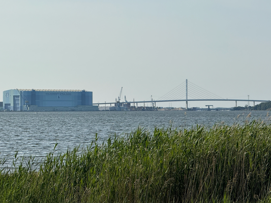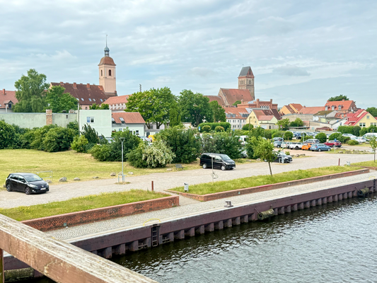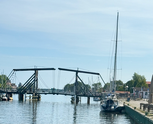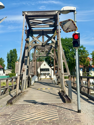 in wolgast passierten wir die peenebrücke, um auf die insel usedom zu kommen.