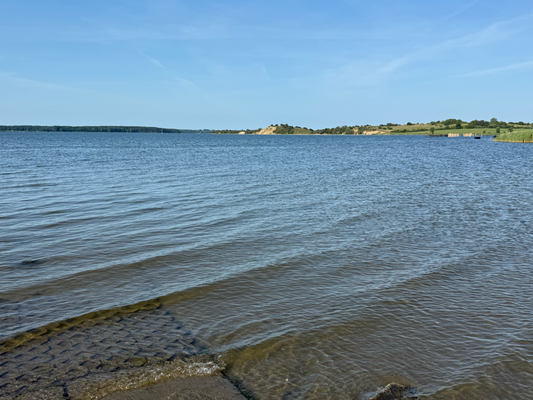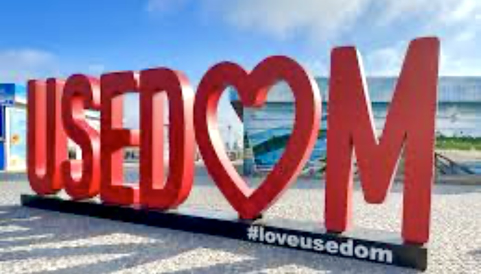 in trassenheide machten wir direkt am wasser halt. hier stand ein großes schild von usedom.