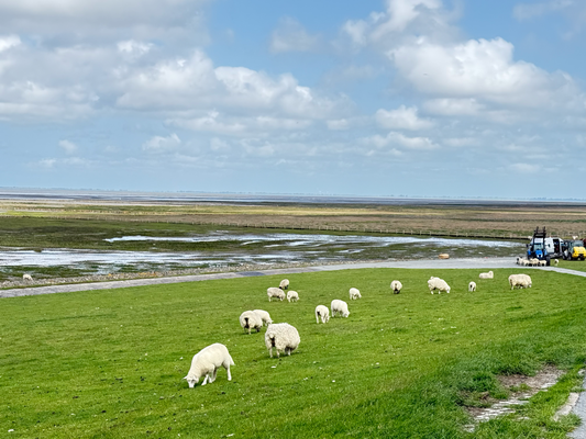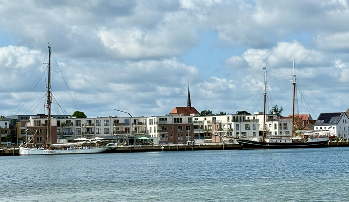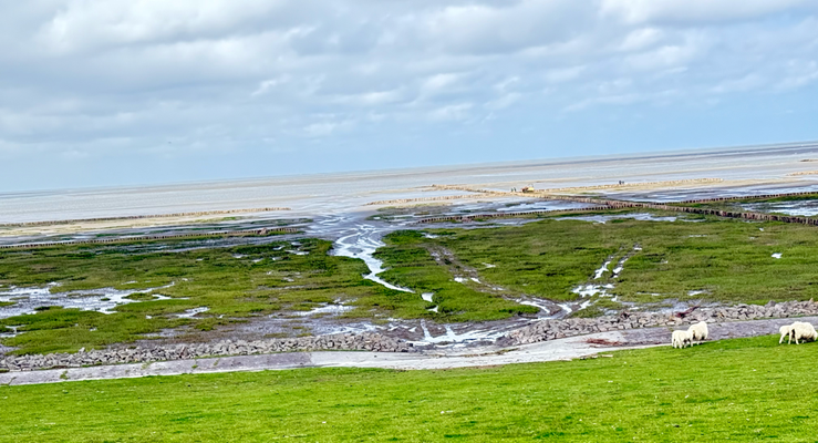 nach einem ausgiebigen frühstück begaben wir uns um 8:00 uhr auf unsere tour. ziel war heute husum. es schien die sonne, dunkle wolken, befanden sich aber noch am himmel. da es ziemlich windig war, wurden diese schnell verweht. über den größten teil der strecke hatten wir haute kräftigen gegenwind,der von der seite kam. bis gegen mittag war es noch ziemlich kühl, so dass ich tatsächlich zwei jacken an hatte, um nicht frieren zu müssen. erst gegen 13:00 uhr kam die sonne richtig zum vorschein. das war in den temperaturen auch gleich zu merken, so dass ich nun mit 1 jacke fuhr.. der weg führte uns über meldorf, tönning/hafen letztlich nach husum. der wind war heute bei ca. 4-5 windstärken konstant. mit dem e-bike war das noch einigermaßen angenehm zu fahren. jedoch musste frank mit seinem normalen rad ganz stark arbeiten, da der wind kräftig gegen sein rad mit den vier taschen drückte. am morgen waren auf den strecken, die direkt am wasser vorbei führten zu sehen, dass noch ebbe herrschte. das wasser war ziemlich weit zurückgedrängt. zum mittag waren die flächen schon wieder mit wasser bedeckt. landschaftsmässig kamen wir an vielen feldern mit gras, getreide, kohl, oder rüben vorbei. auf den grasflächen waren große herden von schafen oder kühen zu sehen. gegen 15:40 uhr erreichten wir den husumer hafen. ich hatte mein ziel für heute erreicht. frank musste noch bis nach breklum fahren, da er dort sein quartier hatte. ich hatte ein zimmer in husum gebucht. wir werden uns morgen vormittag vor 11:00 uhr am bahnhof in niebüll treffen, um anschließend mit dem zug nach westerland zu fahren. auf empfehlung der vermieterin, aß ich am abend beim italiener dolce vita am hafen ein leckeres pastagericht.