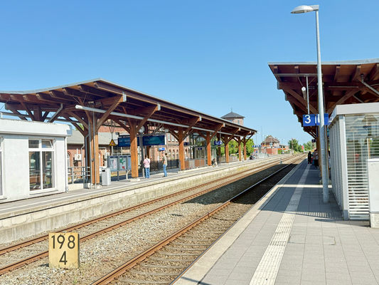 nach kurzem frühstück im tine cafe am husumer hafen, startete meine fahrt von husum nach niebüll und danach weiter nach sylt. das wetter war sonnig mit moderatem wind. ich sah ein reh auf einem feld und einen fuchs, der sich in der sonne sonnte. nach 2 stunden, 20 minuten und 53 kilometern erreichte ich den bahnhof in niebüll. wir warteten auf den zug um 11 uhr nach sylt, aber es gab keinen platz mehr für fahrräder. also nahmen wir den zug nach westerland um 12:15 uhr.