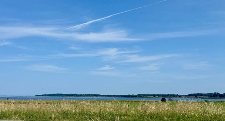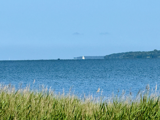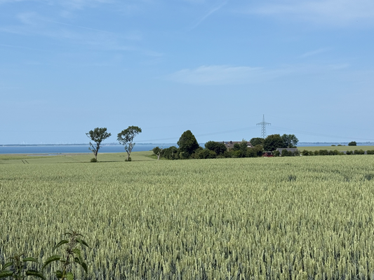 schaut man bei meiner unterkunft aus dem garten nach rechts, kann man in größerer entfernung die ostsee und die fehmarnsundbrücke sehen.