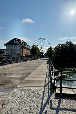 von der jugendherberge aus starteten wir bei sonnigem wetter, aber noch kühlen temperaturen, in richtung hafen. auf dem weg dorthin ist auch in warnemünde ein riesenrad zu sehen.