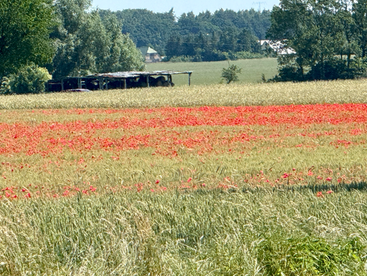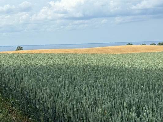 wir passierten viele getreidefelder deren halme schon hellbraun waren, so dass sie vermutlich schon bald abgeerntet werden.