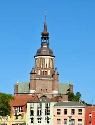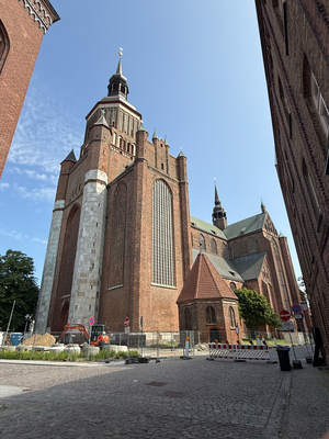 kurz vor der einfahrt nach greifswald waren schon aus der entfernung drei große alte kirchen zu sehen.