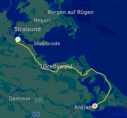 nach der ausgearbeitete route von frank sollte anklam 18 km entfernt sein.