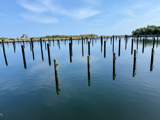 wir fuhren in richtung hafen und passierten dabei zwei brücken. die zweite brücke ist komplett aus holz gefertigt und dürfte schon sehr alt sein.