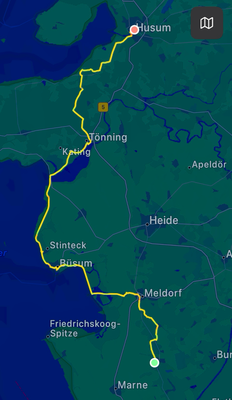 es war aber schon schwierig, die tour auf dem handy zu verfolgen, da sowohl auf dem telefon als auch auf dem visier wassertropfen waren und man so den streckenverlauf nicht immer sofort erkennen konnte. das hatte zur folge, dass ich schon mal eine wegkreuzung verpasst habe und somit ein paar kilometer mehr aus der tour wurden. laut plan sollten es ca. 80 km sein.die tour war 91,4 km lang, laut meinem radcomputer. auf dem weg kamen wir an den festivalgeländen in wacken vorbei, wo jedes jahr im august ein riesiges heavy-metal-festival stattfindet. es ist unglaublich, dass dort für 1 woche lang etwa 80.000 leute auf dem riesigen gelände sind. jetzt wächst dort gras und getreide. in hochdonn habe ich mit der fähre den nord-ostsee-kanal überquert. die tour hat insgesamt 3.40 stunden gedauert. im landhotel rehedyk in st. michaelisdonn funktionieren die heizkörper super, so dass unsere nasse kleidung schnell getrocknet ist. am abend haben wir uns im bistro auszeit spaghetti schmecken lassen. morgen früh geht es dann weiter nach husum.