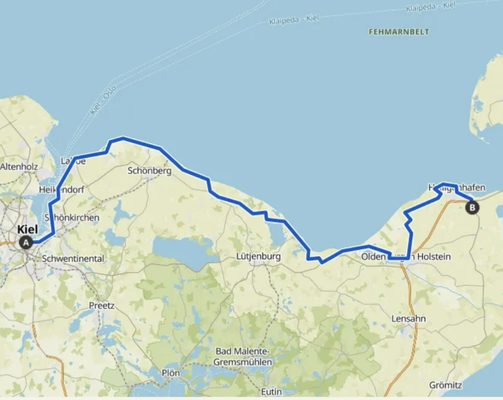 heute führte uns der weg von kappeln über olpenitz, damp, eckernförde nach kiel.
