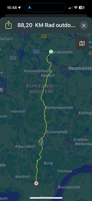 ich hatte die ganze tour über starken seitlichen gegenwind. nach anderthalb stunden und 36 km bin ich in hohenwestedt angekommen. dort habe ich bei einem bäcker was gegessen und getrunken. danach ging es weiter in richtung schenefeld. der regen hat bis sankt michaelisdonn angehalten, aber er war nicht immer so stark. zum glück hat mein helm ein visier, so dass meine brille nicht ständig nass wurde.