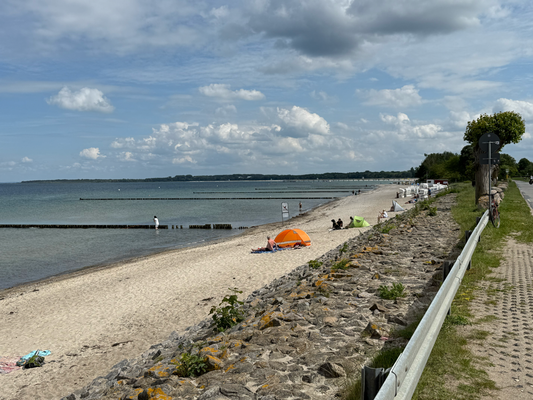 wenn man dazu das bild sieht zwischen strand und dem stein kann man feststellen, in welcher höhe das wasser gestiegen war. der streckenabschnitt hinter damp bis nach eckernförde war sehr hügelig. danach wurde es moderat.