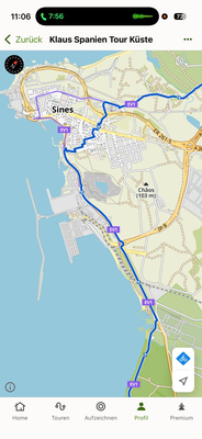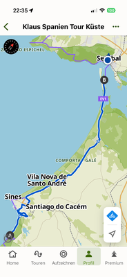marcel war auf bitten so freundlich und hat mir auf komoot ein „schnelle „ route nach huelva zusammengestellt, die ca. 100 km lang sein wird.