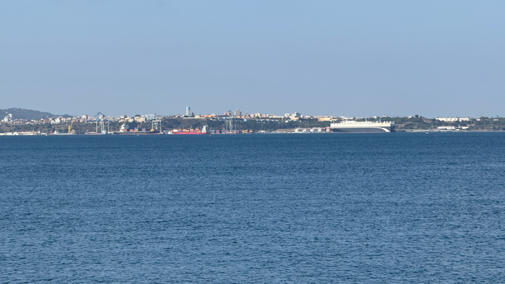 cadiz war über mittag voll mit touristen, die sich durch die straßen drängten. daher fuhr ich gleich weiter zum hafen, um mit einer fähre auf die andere seite der stadt überzusetzen. nach 40 minuten war man dort.