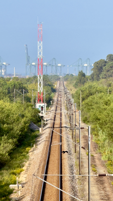 das anstrengende beim durchqueren der weiteren orte war, dass es ständig straßenwechsel gab und es etwas länger dauerte aus den städten herauszukommen. aber es ist wirklich schön, an der küste entlangzufahren. wenn der wind mit konstant 4-5 windstärken als gegenwind kommt, wird die geschwindigkeit auf dauer aber geringer. zwischendurch führte mich die strecke von einem festen feldweg durch eine größere sandfläche, sodass ich schieben musste. laut google maps waren es bis zum hotel barcelona century noch 46 km. laut anzeige am rad sollten noch 50 km möglich sein.