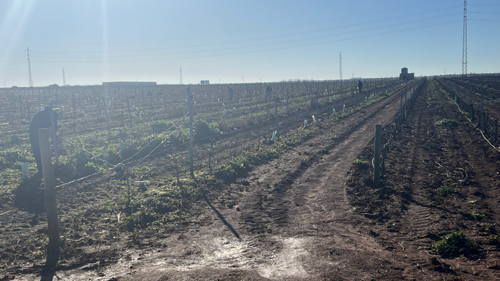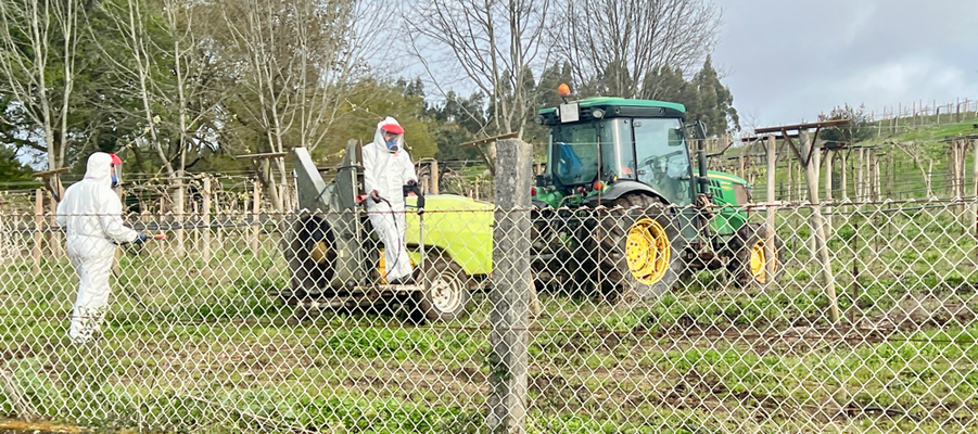 sich wieder auf den Weg machten, machte die Eigentümerin Fotos von ihnen vor der Bar. Von uns natürlich auch. Auf der Strecke waren auch Rebstockflächen. Hier besprühten Männer in