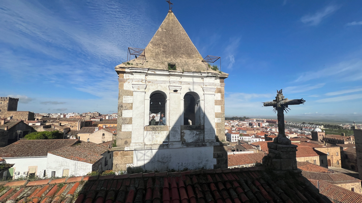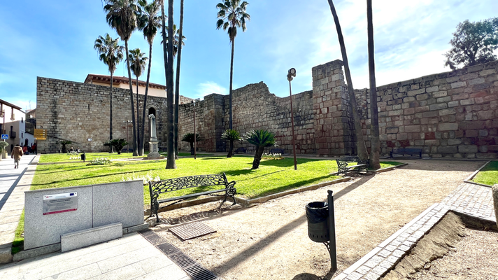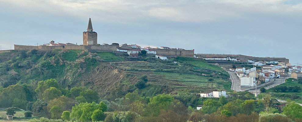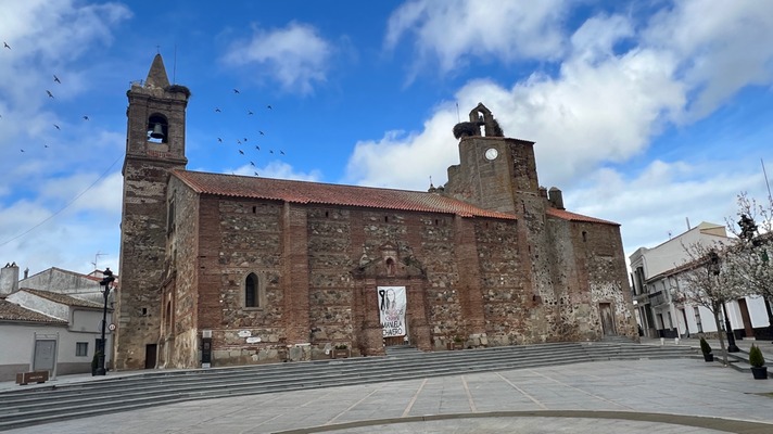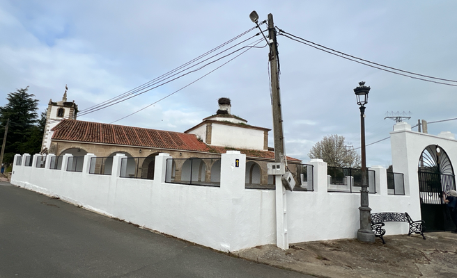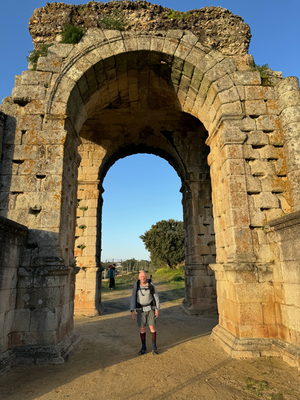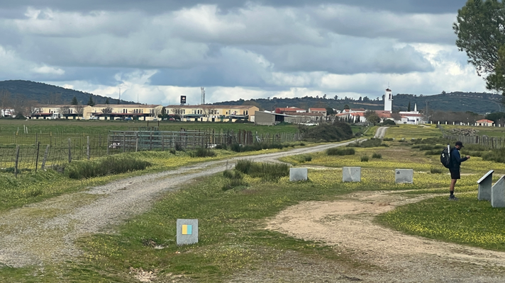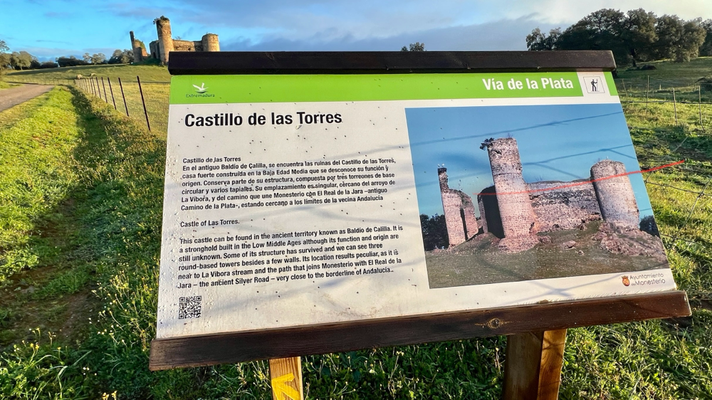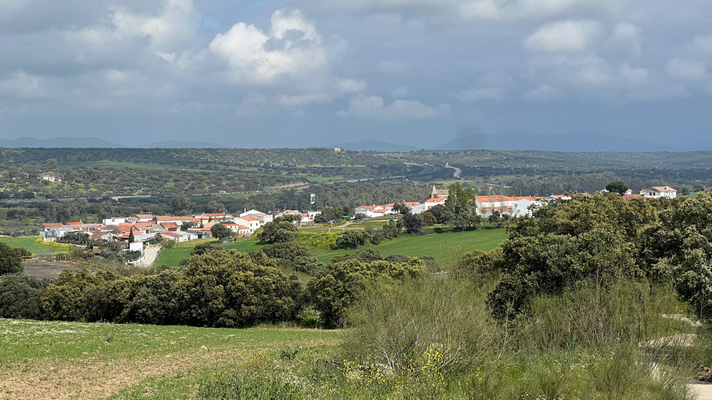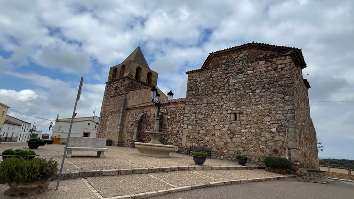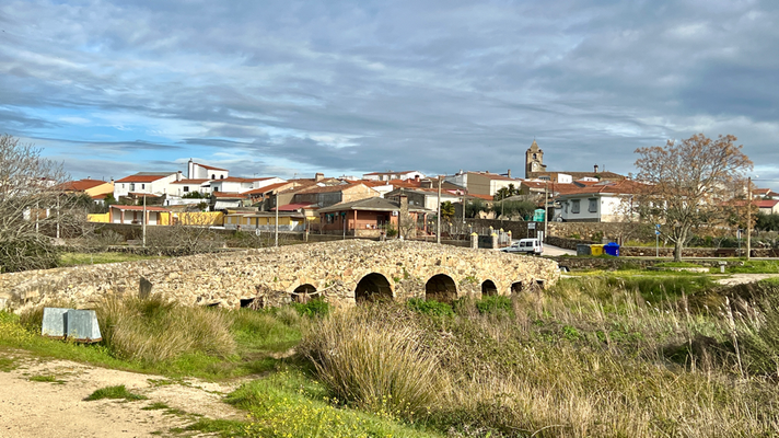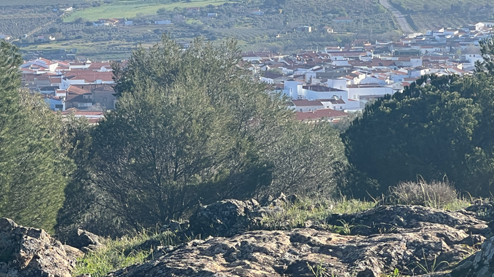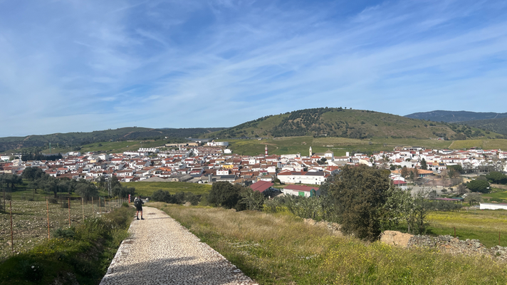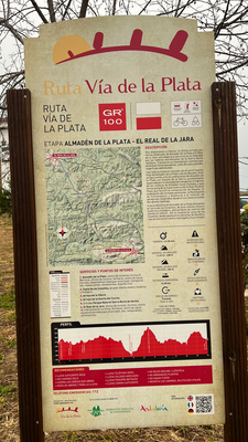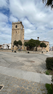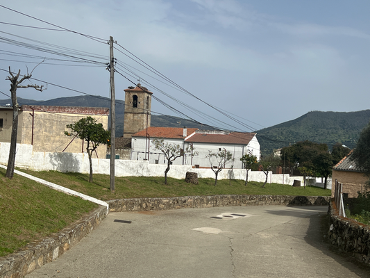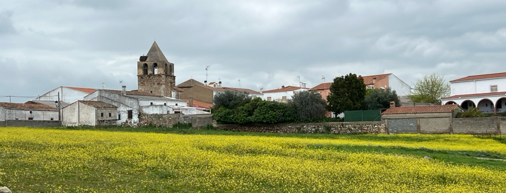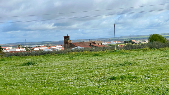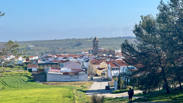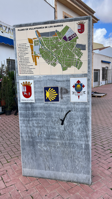 sollte,kamen die Wanderstöcke zum Einsatz. Das Wetter war sonnig bei frischen 7°. Nach ca. 5 km waren wir in Los Santos de Maimona. In der neben der Kirche befindlichen Bar machten wir Pause und