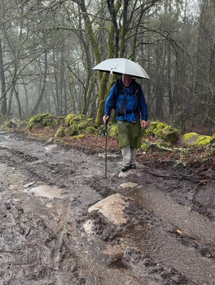 Ein älteres spanisches Ehepaar sowie ein älterer Deutscher ließen sich von den Wetterbedingungen nicht abhalten u wollten den Weg auf jeden Fall gehen. Es wäre alles nicht