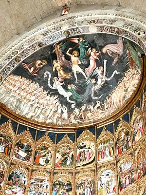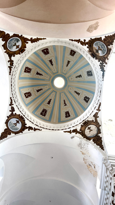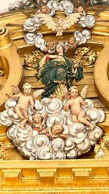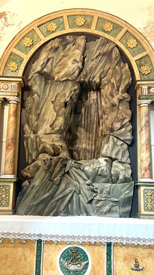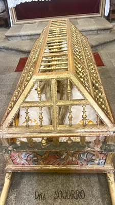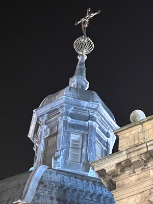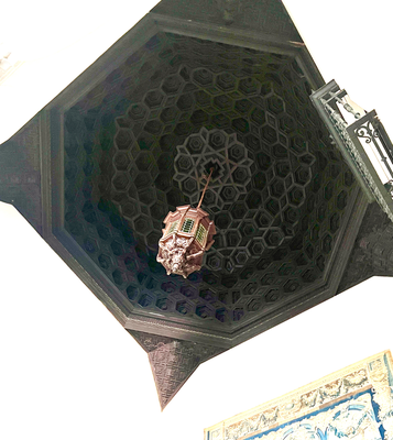 oberen Bereich sind Holzgitter, durch die es bis zum letzten Jahr mit ein wenig Geschick möglich war, das Innere zu fotografieren. Jetzt hat man dahinter noch ein engmaschiges Metallgitter