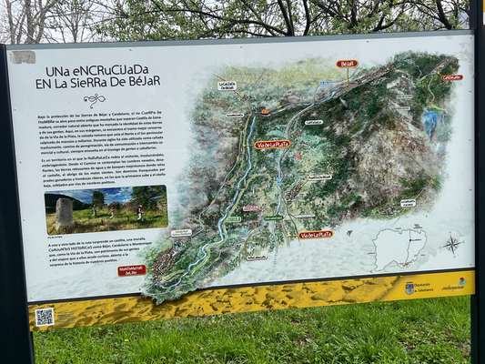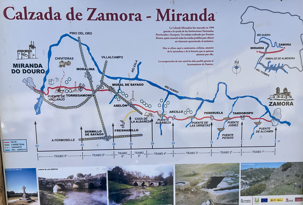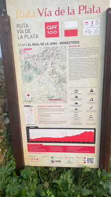 Die Anzeigentafel zum Wegverlauf zeigte, dass auch es auf dieser 14 km Etappe knackig rauf u runter gehen wird. Der Wegverlauf geht zwischen 2