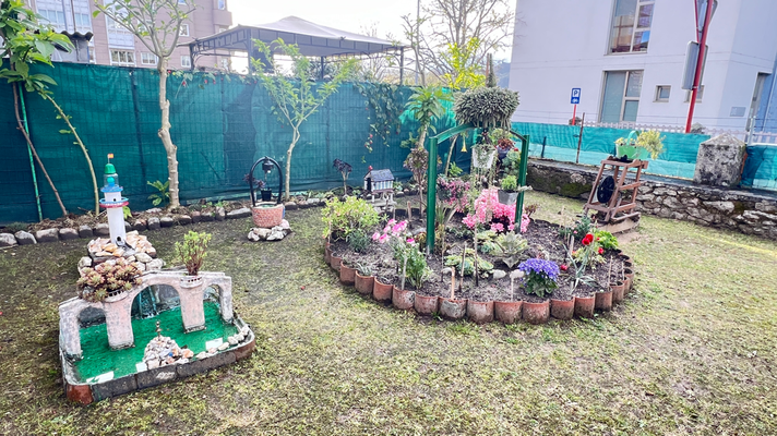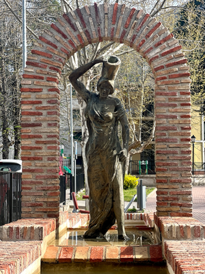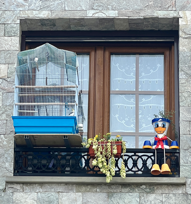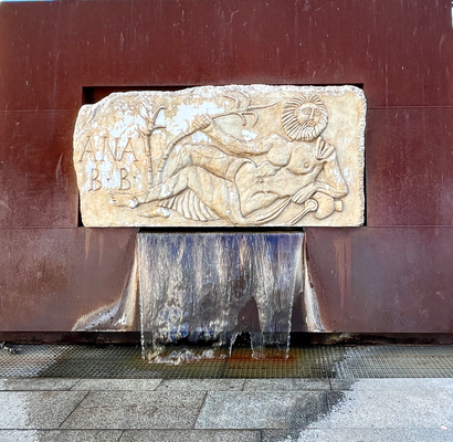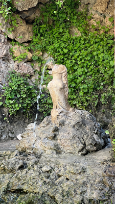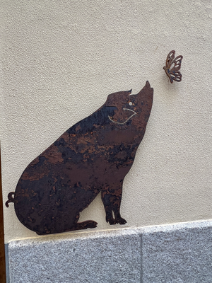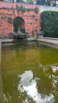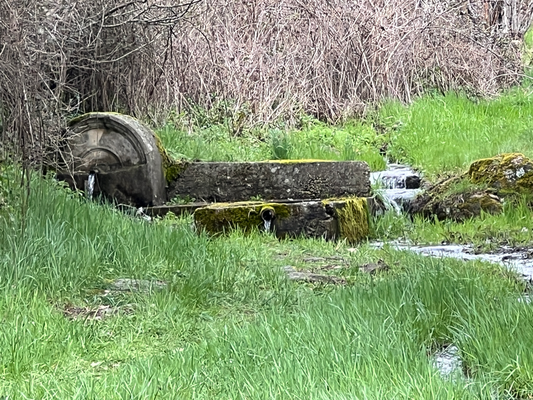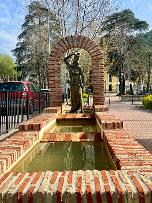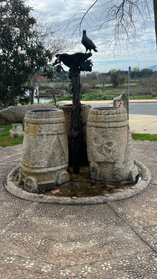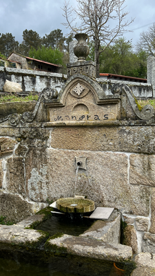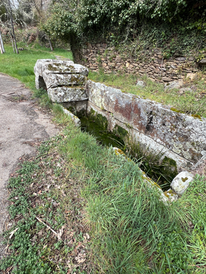 In Ponte Mandras machte wir an einen Haus mit Überstand eine kurze Pause, da dort 2 Bänke waren. Gegenüberliegend gab es einen Trinkbrunnen in dem 3 Fische schwammen. Kurz nach