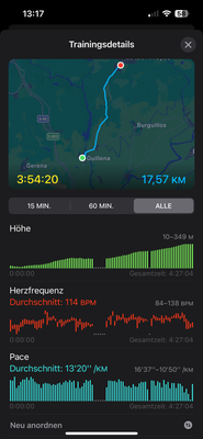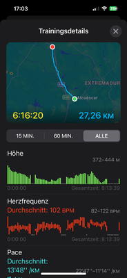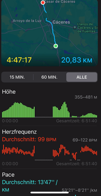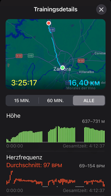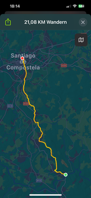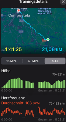 Einstieg um schon gleich im Shirt zu laufen. Die ersten u die letzten 5 km bis Santiago ging es vor allem ständig kräftig bergauf. Der Streckenverlauf war so, als ob man sich im Allgäu befinden