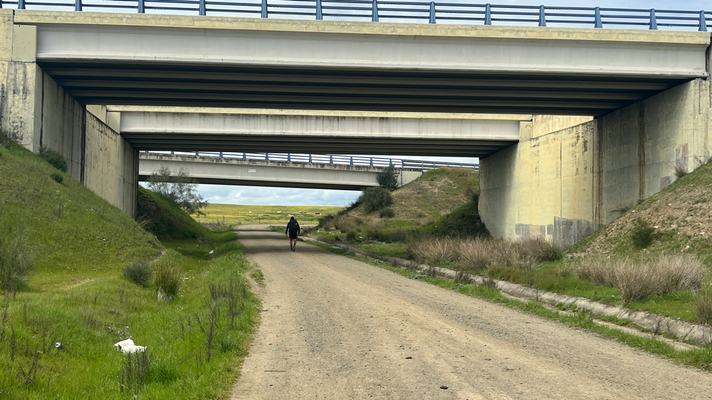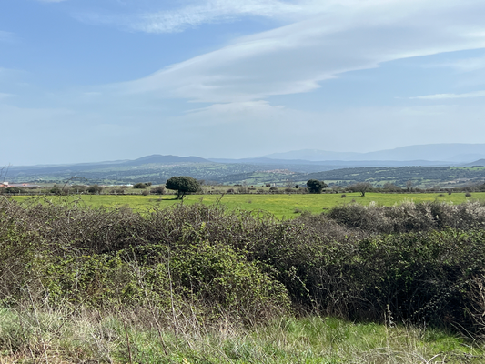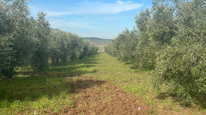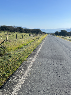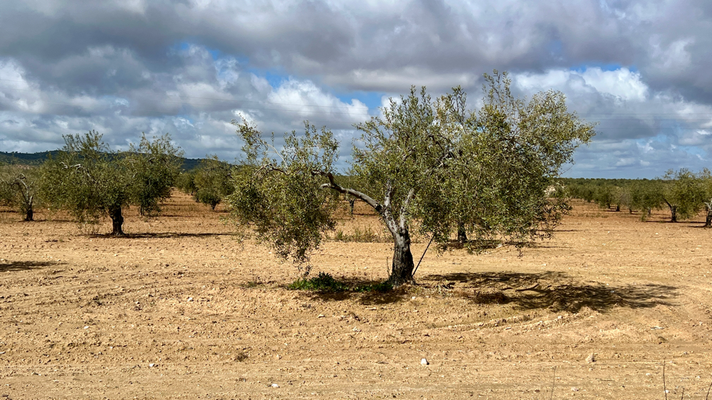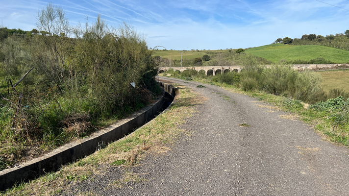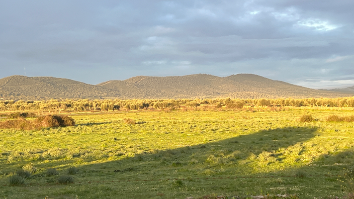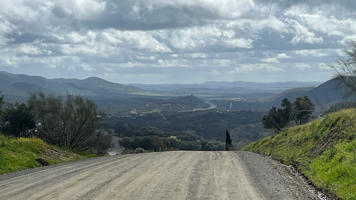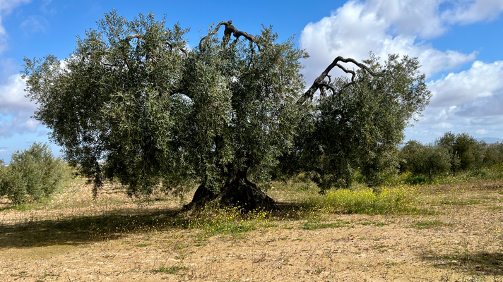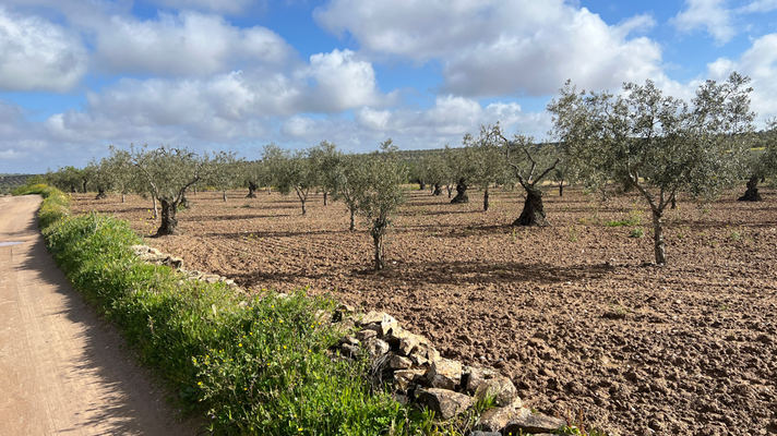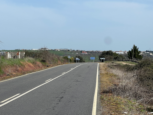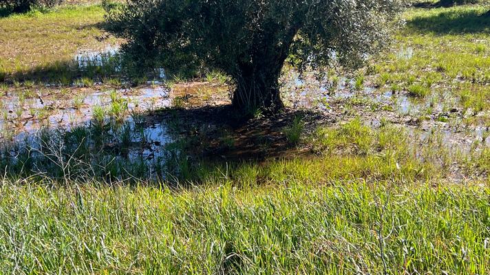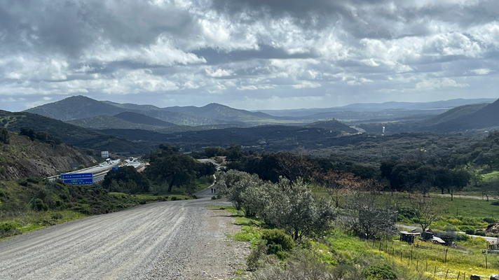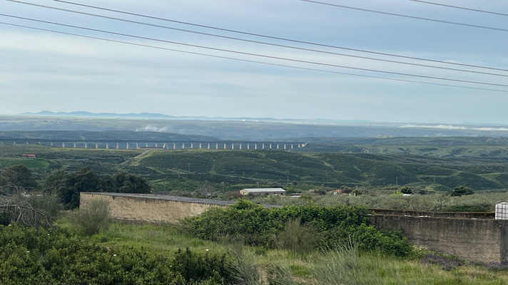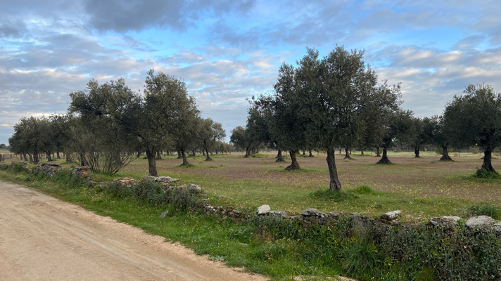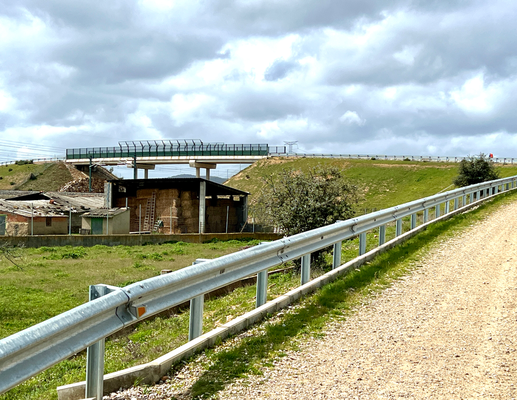 dann nur noch Olivenbäume u einige Wiesen. Auf der bisherigen Strecke waren gerade mal 2 Gebäude zu sehen. Bei km 13 stießen wir auf die Kreuzung einer Bundesstraße, wo nach links gehend nach ca. 300