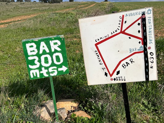 Marcel traf vor der Bar noch eine Schweizer Radpilgerin. Diese hatte er im letzten Oktober auf dem Camino Frances mit ihrem Rad getroffen.