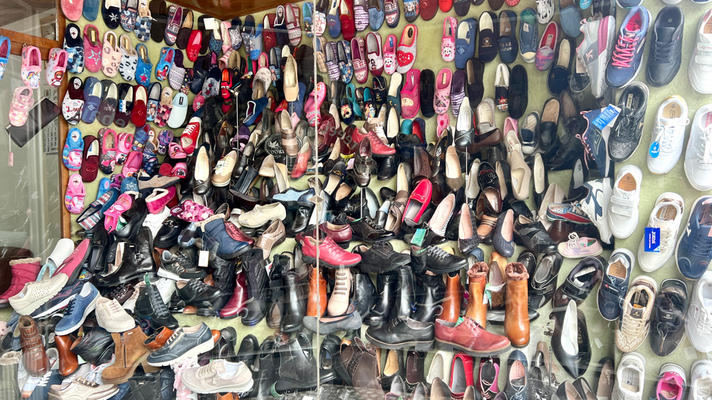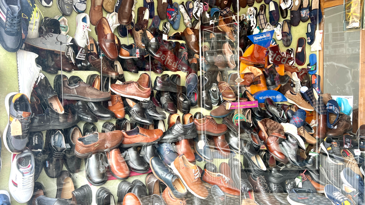 linksseitig ein Schuhgeschäft. Beim Blick auf die beidseitigen Schaufenster konnte es nur heißen „ finde den Fehler „