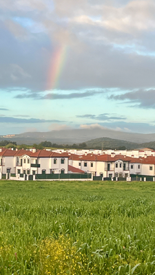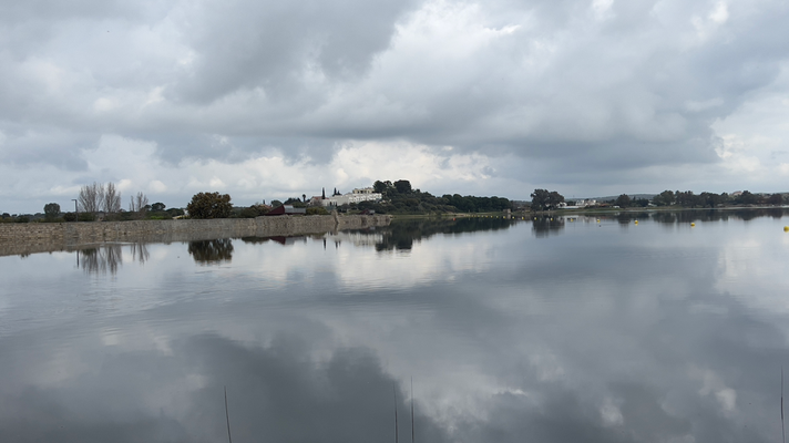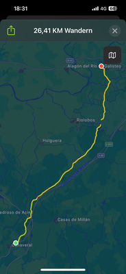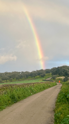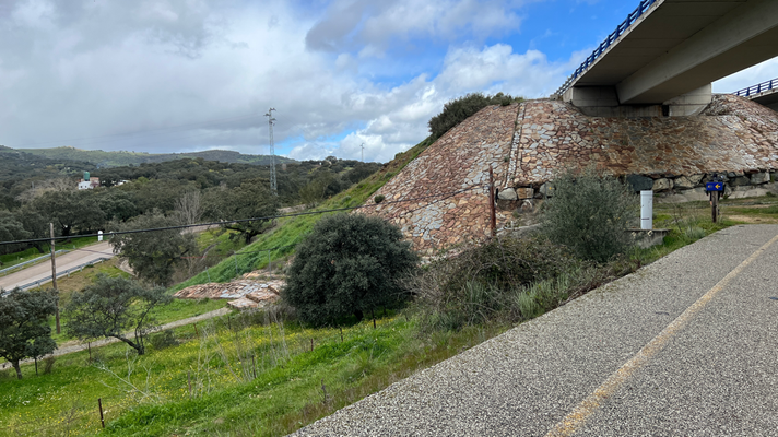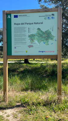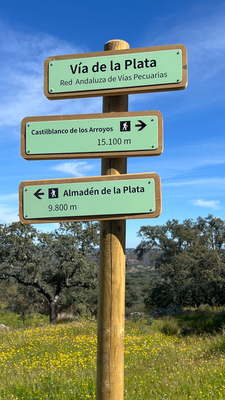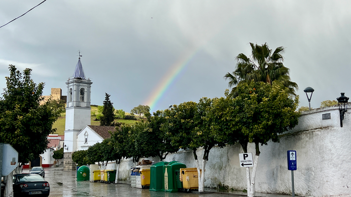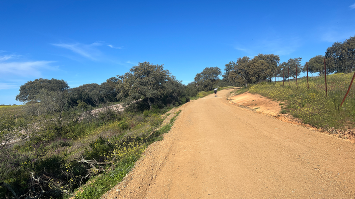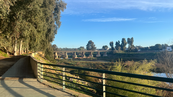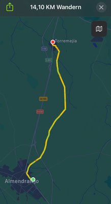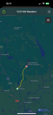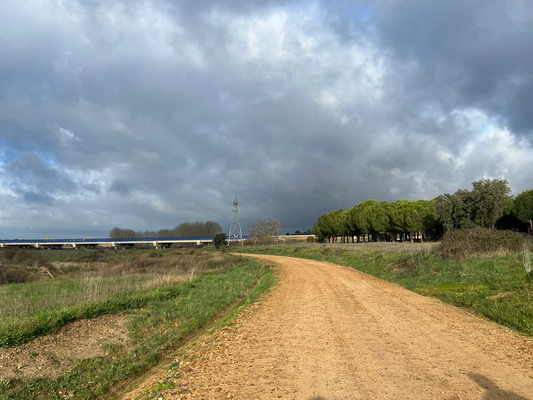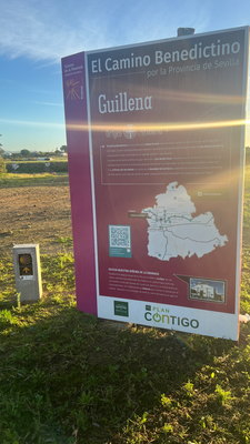 In Santiponce wurde der Regen stärker, so dass ich den Regenrock u Regenjacke anzog. Ab km 13 hörte es auf zu regnen u die Sonne kam die nächsten km stärker durch. Bis Guillena waren es dann noch