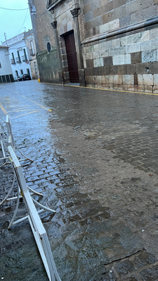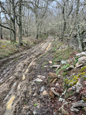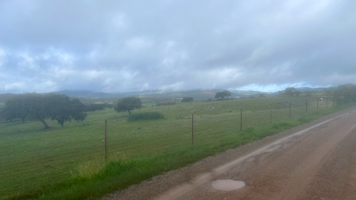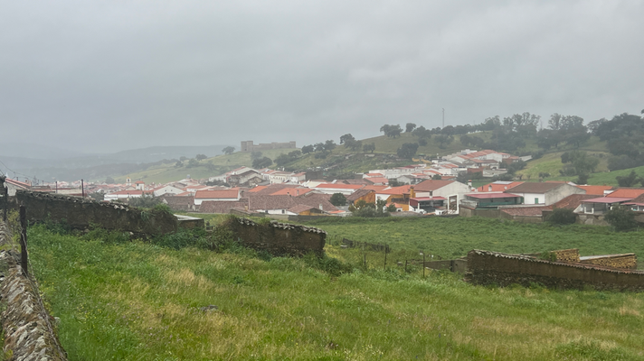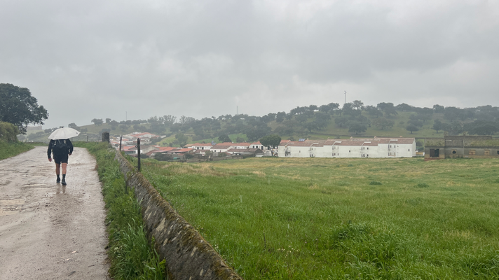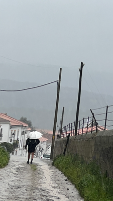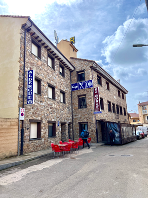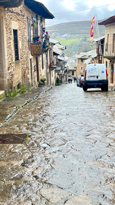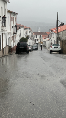 1 km später fing es zunächst an zu nieseln, um dann nahtlos in einen kräftigen Dauerregen überzugehen. Im Ort buchte Marcel per Telefon 1 Zi im Hostal La Ecina.
