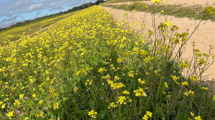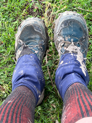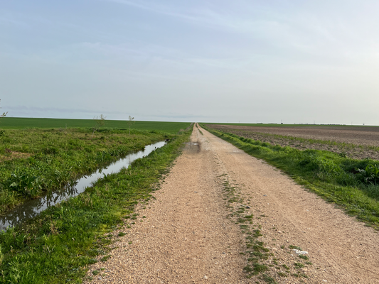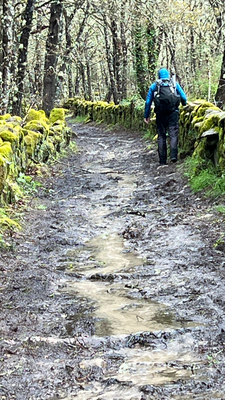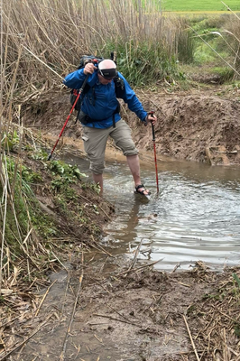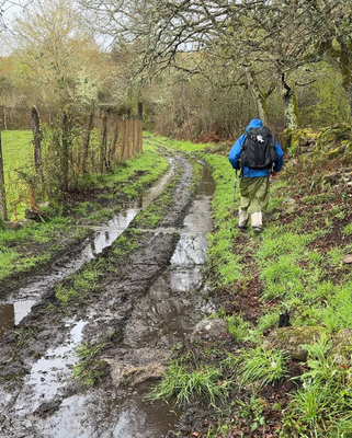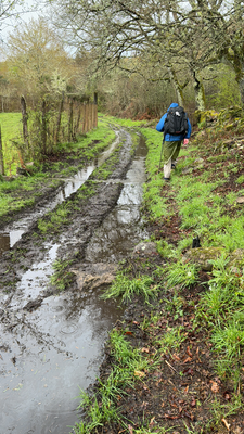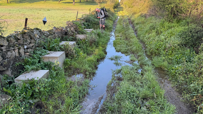 Neben Straßen liefen wir auch auf Feld/Steinwegen. Diese waren durch den Dauerregen der letzten Tage total durchgeweicht oder das Wasser lief gerade bei den Steinwegen wie in