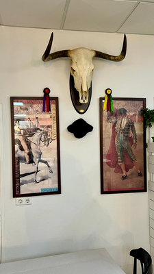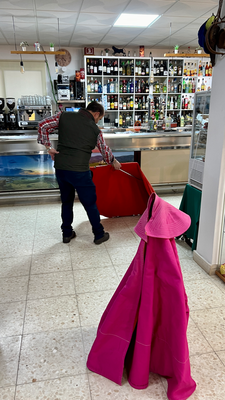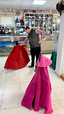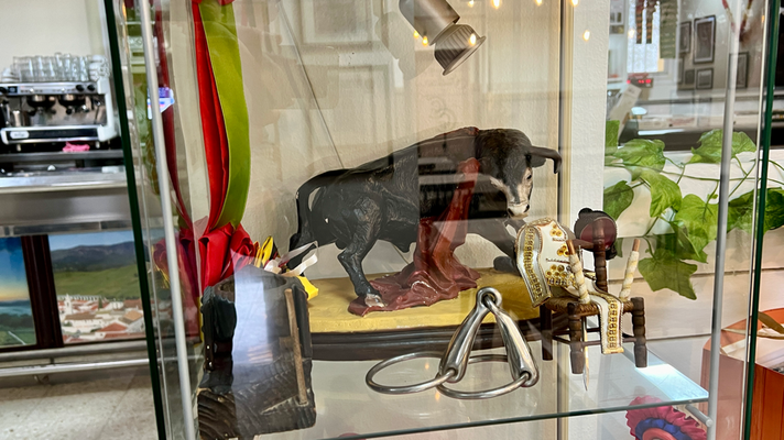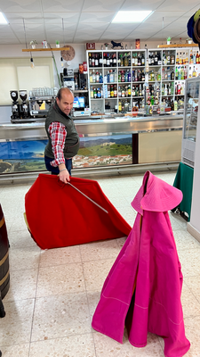 Meine Nachfrage beim bedienenden Besitzer ergab, dass er aktiver Stierkämpfer war u führte uns die Sachen aus der Glasvitrine vor.