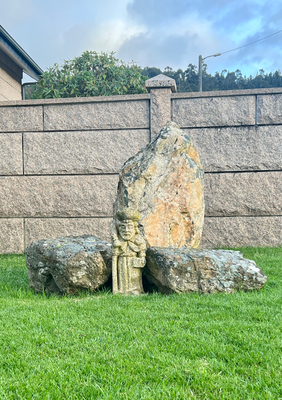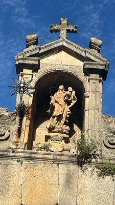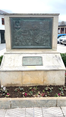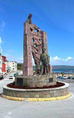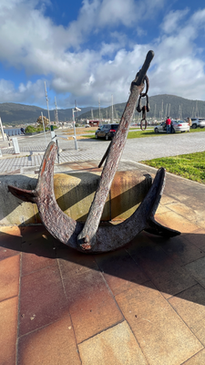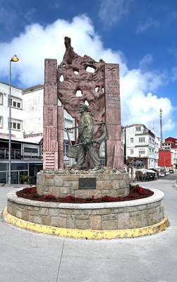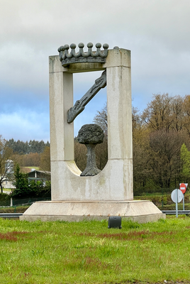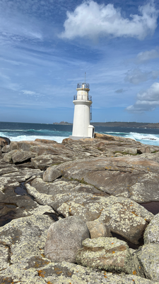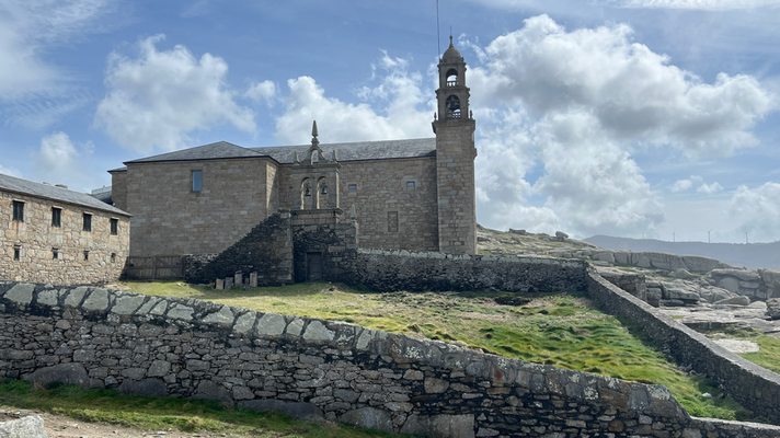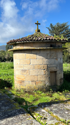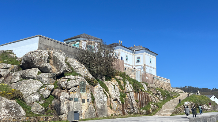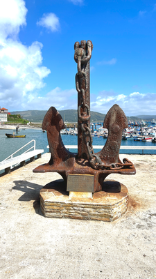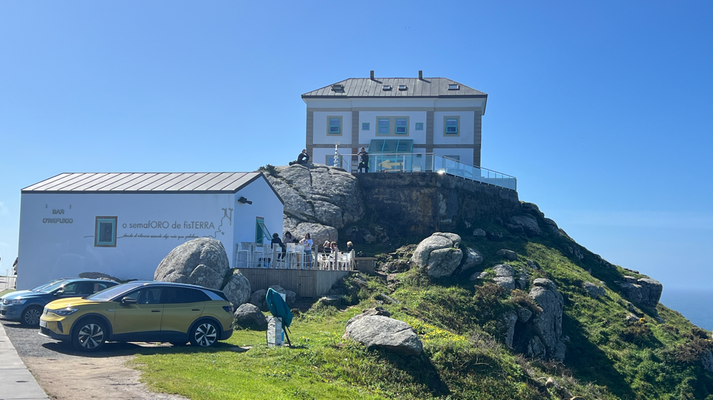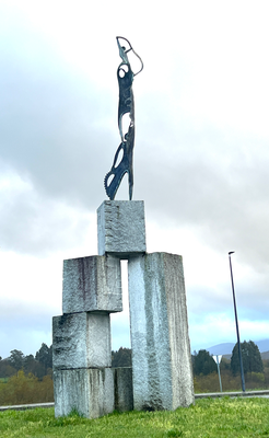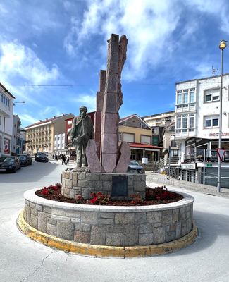 dem Rückweg zum Bus kommt man am jetzt fertigen Verteilerkreis mit Denkmal vorbei. Als 4. Stopp folgte Muxia. Hier hielten wir beim Leuchtturm und der Kirche. Einiges an Metern höherliegend