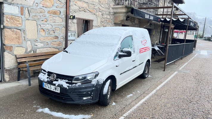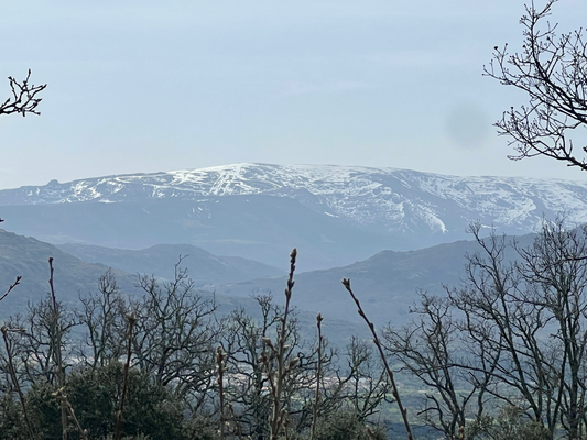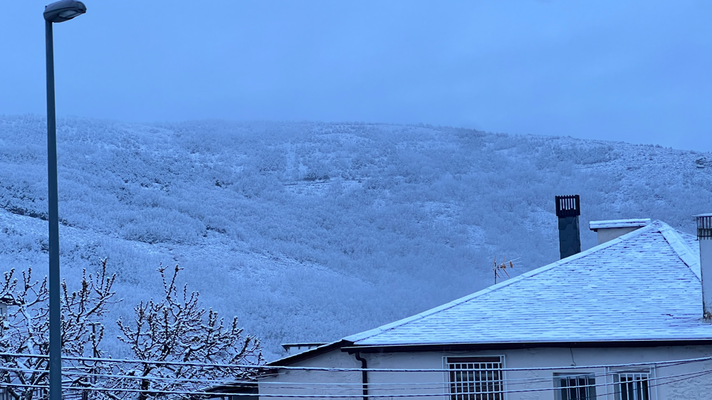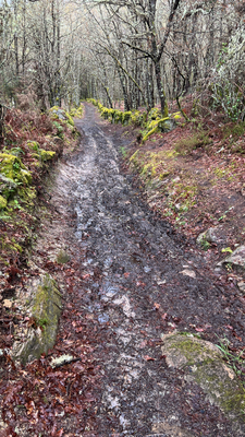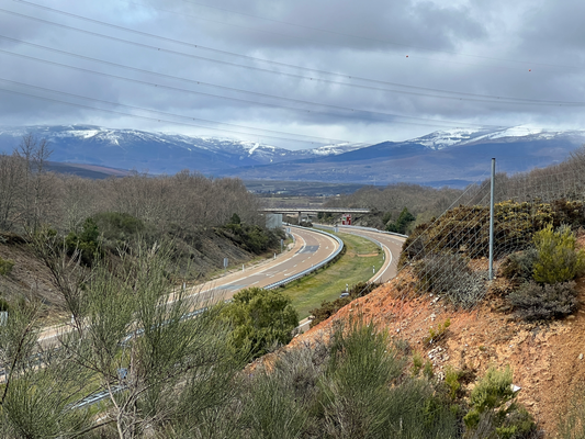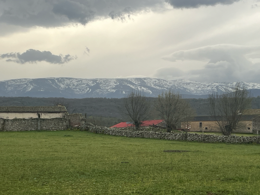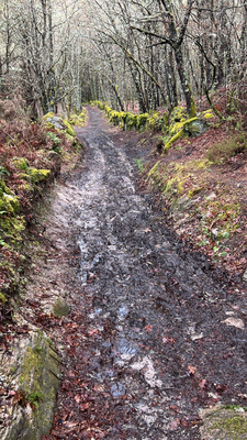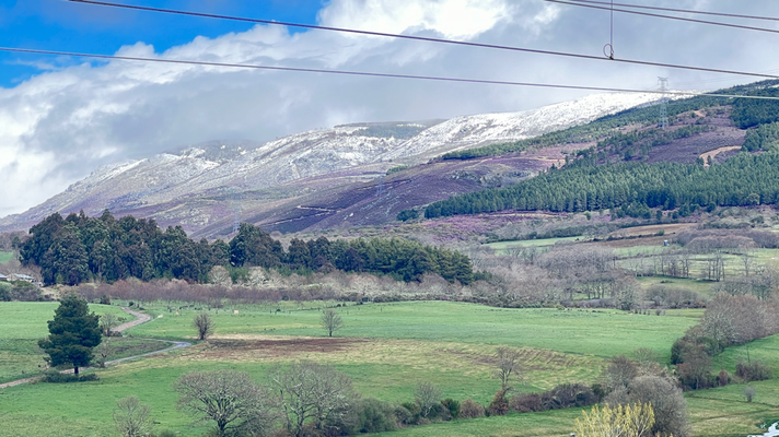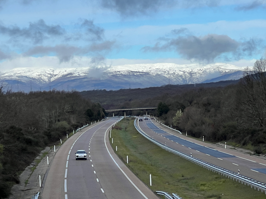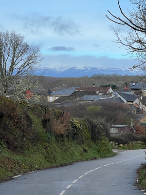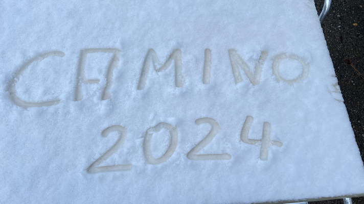 mit Schnee bedeckt. Weiterhin sah es nach Regen/Schneeschauern aus, da die Temperaturen um 2° waren. Wegen der Wetterverhältnisse hat sich das Wandern auf dem offiziellen Camino heute ebenfalls