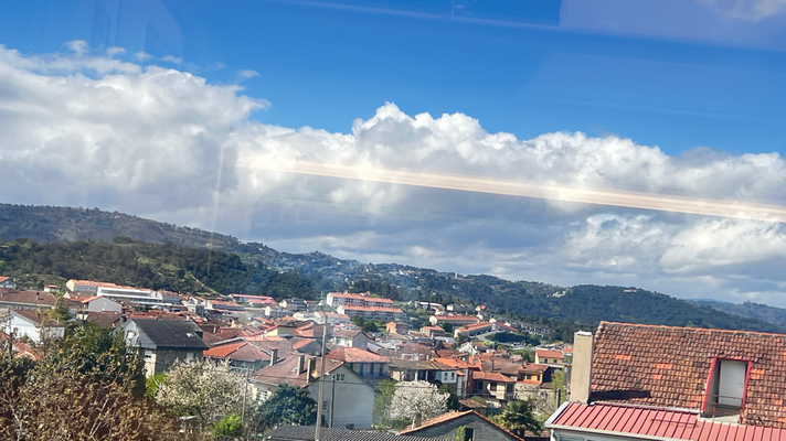 bot sich einerseits ein sonniger Himmel. Andererseits aber auch kräftige dunkle Wolken. Die Fahrt mit dem Schnellzug führte durch viele Tunnel und in einer halben Stunde waren wir in Ourense.