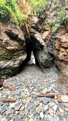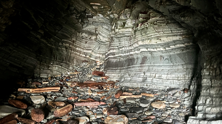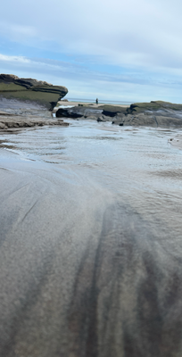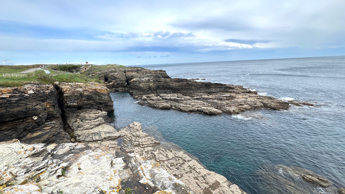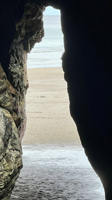 Wir erreichten den Strandbereich mit seinen Felsen u Höhlen bei Ebbe, so dass eine Begehung dort gut möglich war. Er soll eine Länge von ca 2 km haben. Welche Kräfte das Wasser