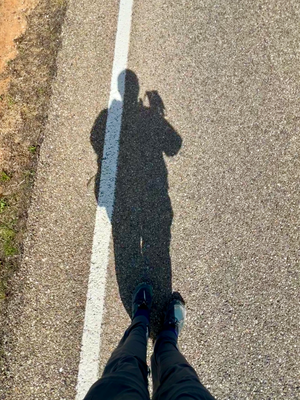Wetter war sonnig, ohne Wind, bei 5 °. Schnell war man auf Betriebstemperatur u die Kilometer spulten sich gut ab, da es moderat meist aufwärts ging. Nach 6 km war rechts der Straße ein neuer breiter